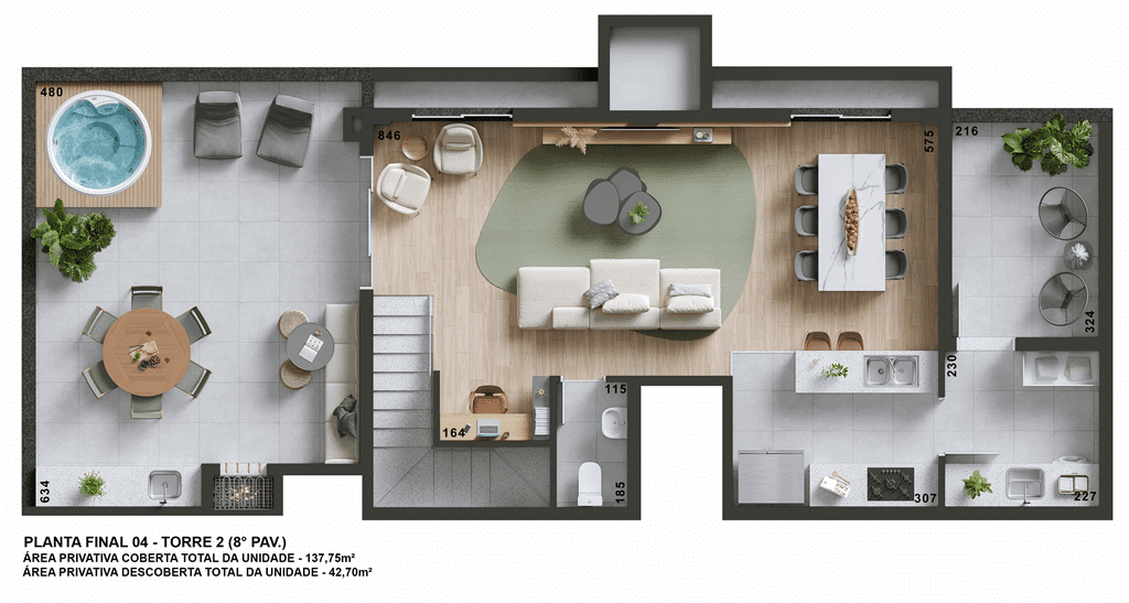 Infraestrutura para SPA em apartamentos duplex e gardens .