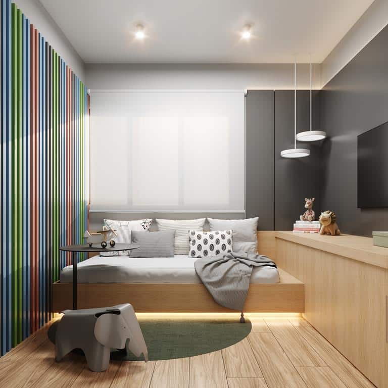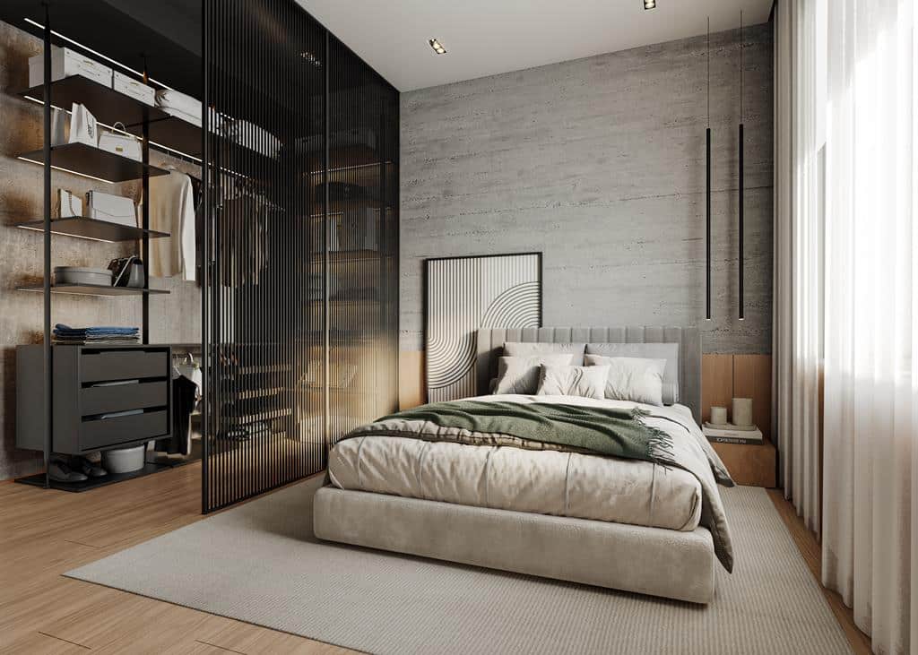Paredes internas em drywall entre os ambientes, que permite uma maior flexibilidade e adaptações posteriores.