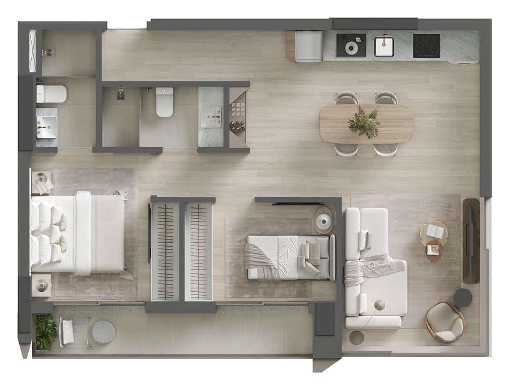 NICHO NA ÁREA DO BOX, PONTO PARA DUCHA HIGIÊNICA QUENTE E FRIA E RALO OCULTO NOS BANHEIROS.